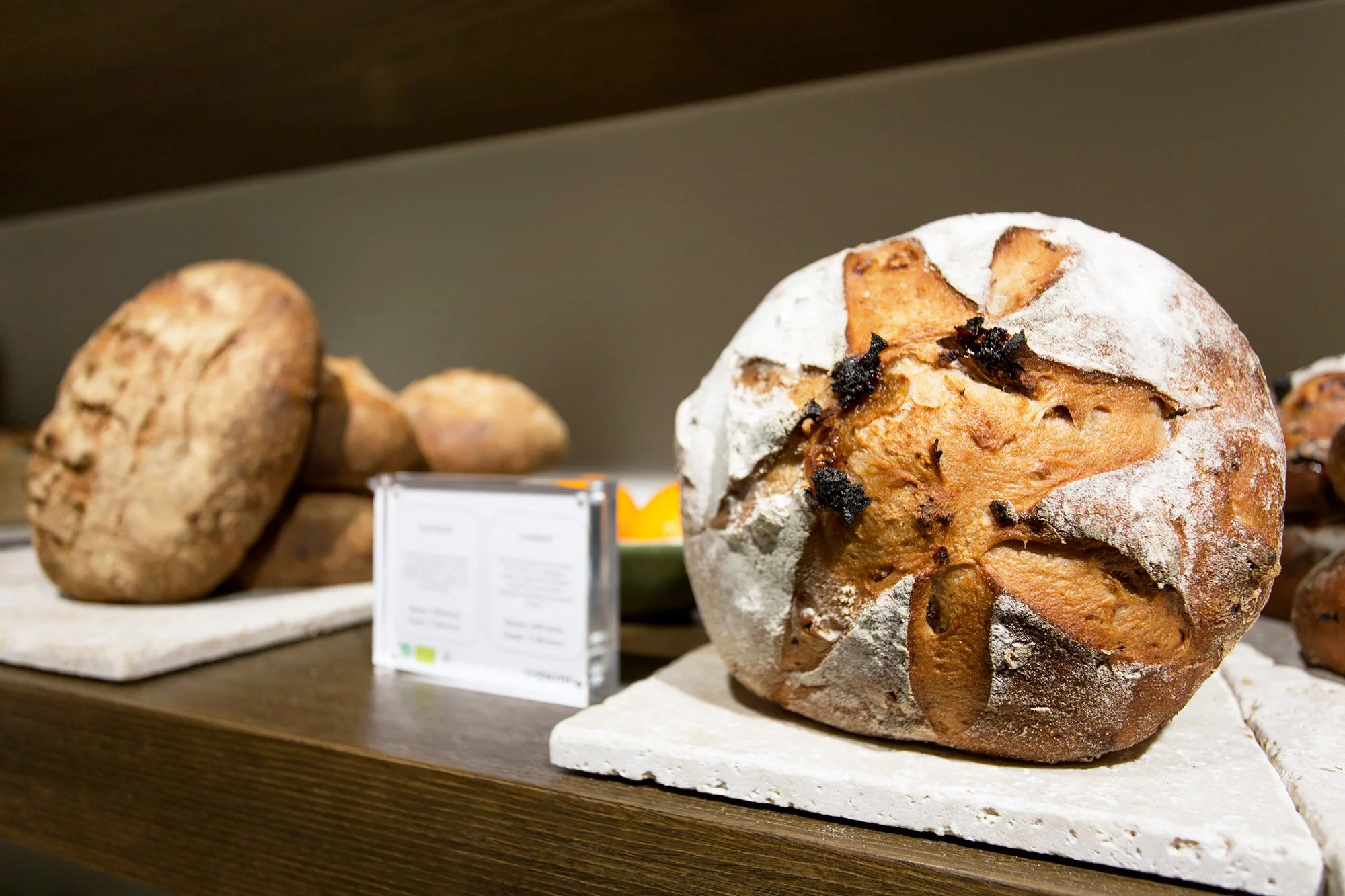 Le design intérieur adopte des lignes douces et des matériaux qui évoquent les bruits et les textures de la boulangerie artisanale, avec un choix de couleurs terreuses et de matériaux naturels comme le bois de chêne.
