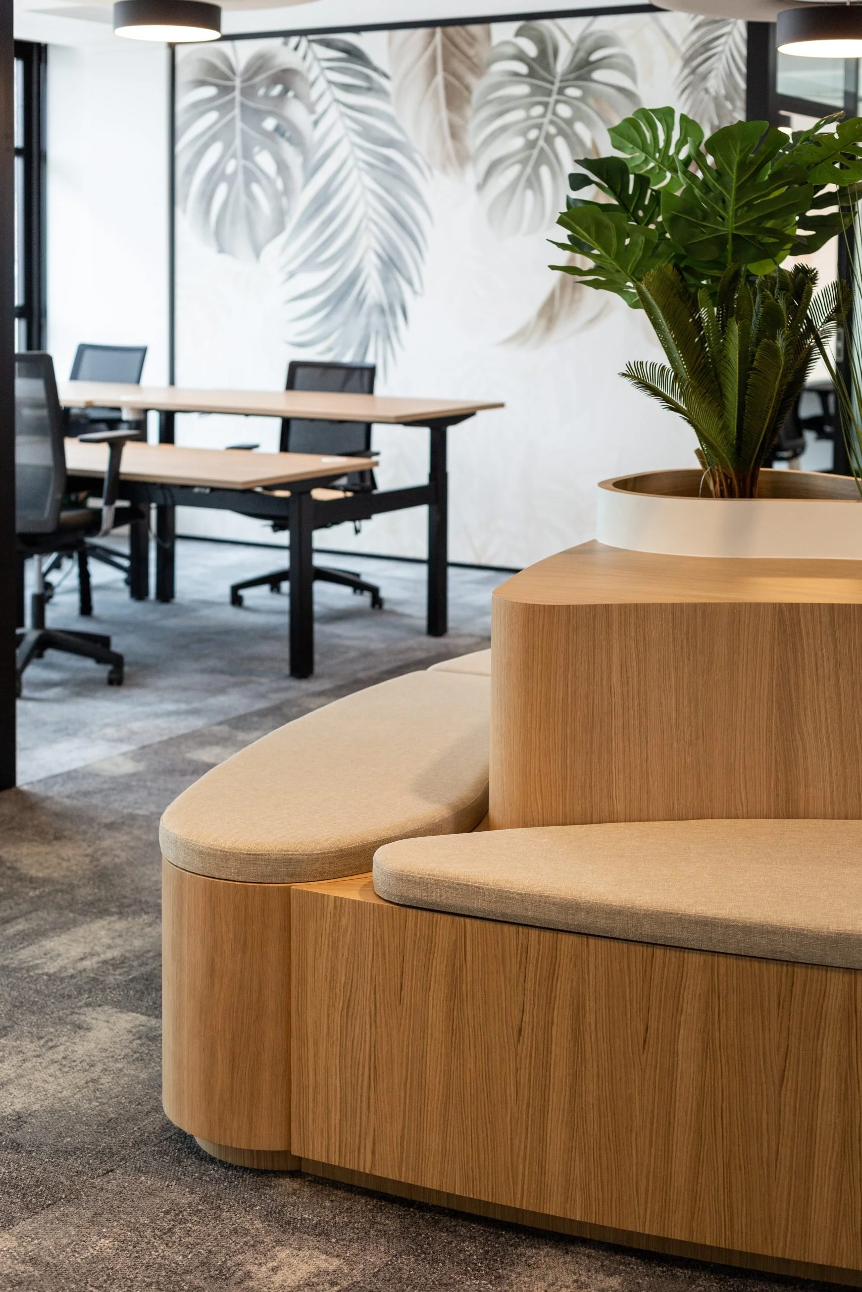 Pour répondre à ce défi, nos équipes du bureau d’études, du pôle Design et Mobilier se sont inspirées de la nature. Leur vision ? Un décor innovant façonné par des arches colorées aux jeux d’illusions d’optique. Ce concept sublime un espace ordinaire en un lieu unique et convivial, agrémenté d’une zone de détente, d’une bibliothèque et de sièges confortables.