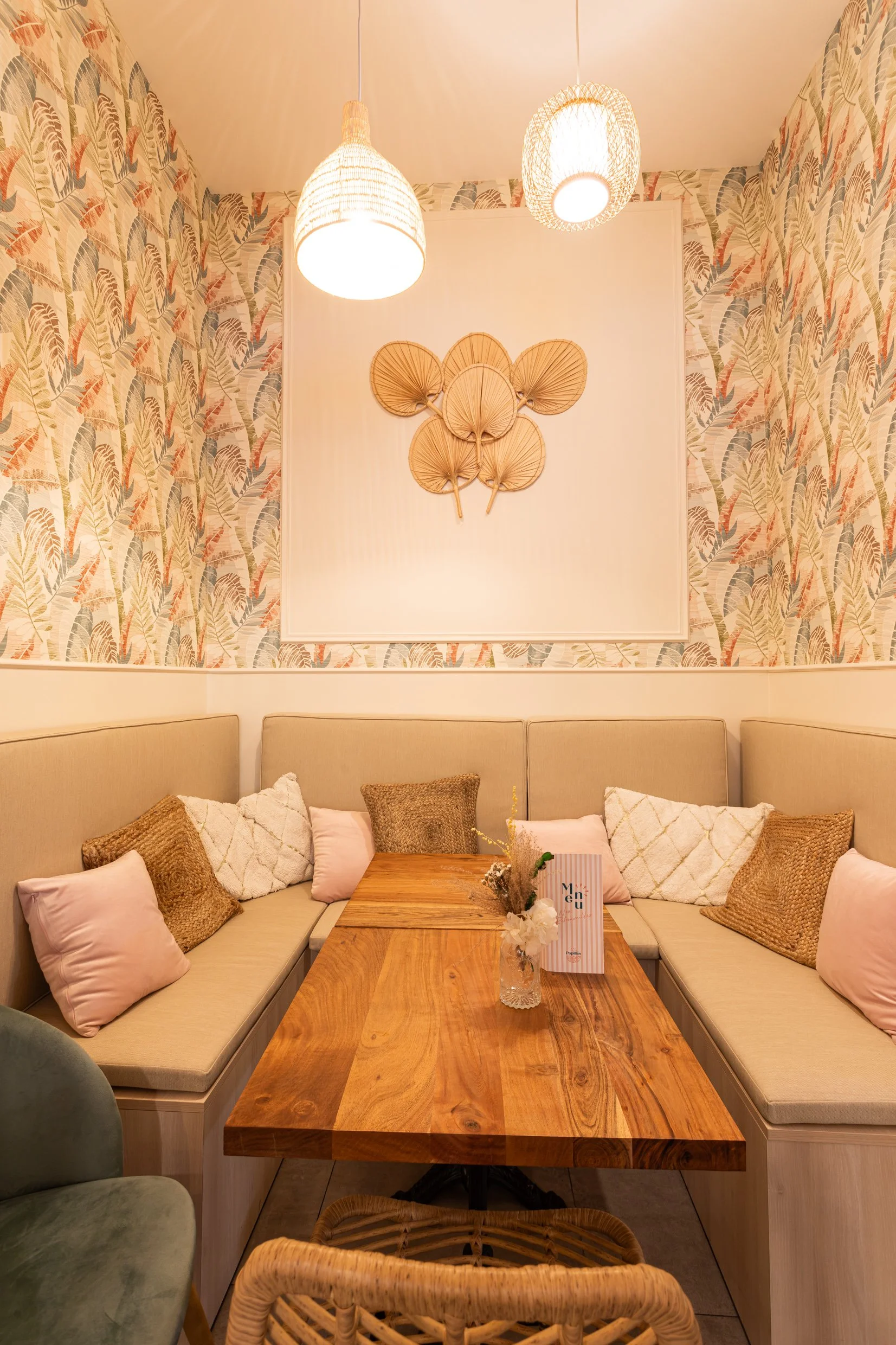 Nos équipes ont imaginé un décor audacieux, alliant volumes généreux et éléments épurés pour instaurer un univers à la fois convivial et sophistiqué. Les jeux d’ombres et de lumières, mis en valeur par un éclairage sur-mesure, créent une atmosphère intimiste propice à la découverte des saveurs.