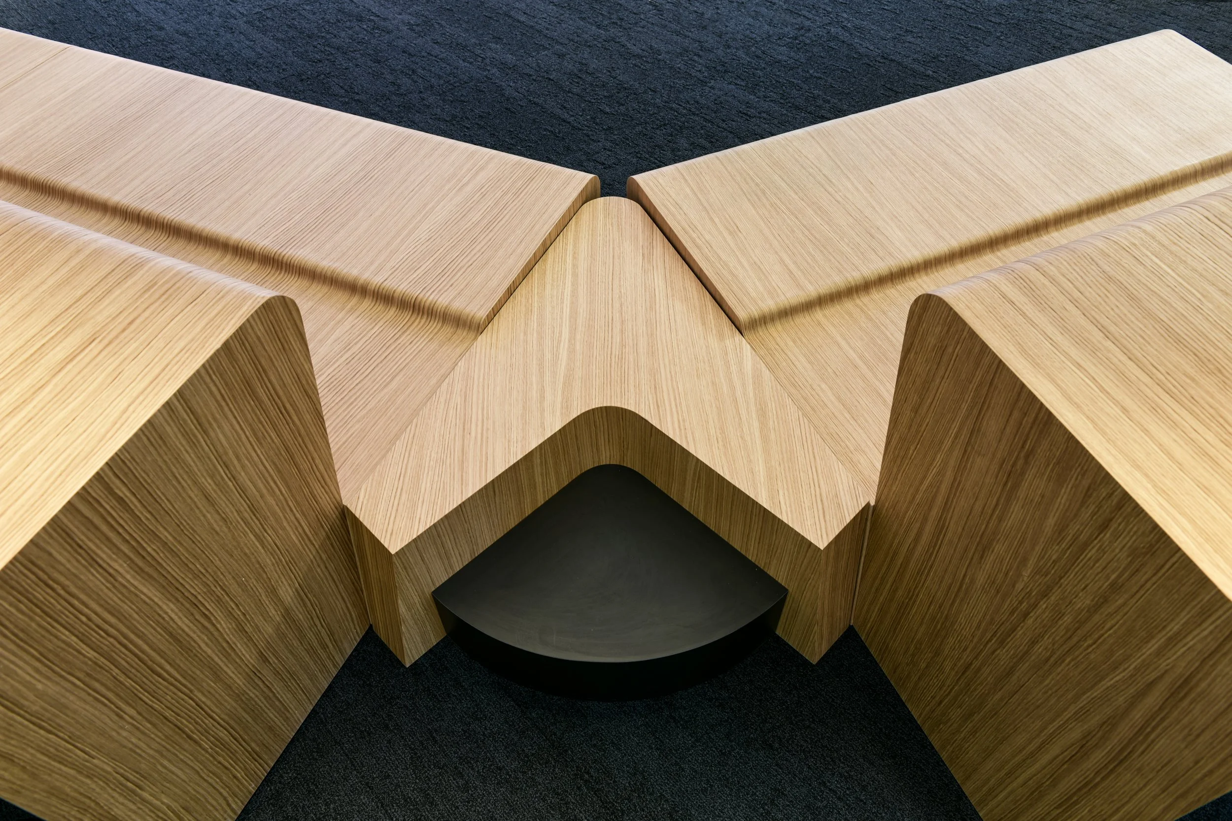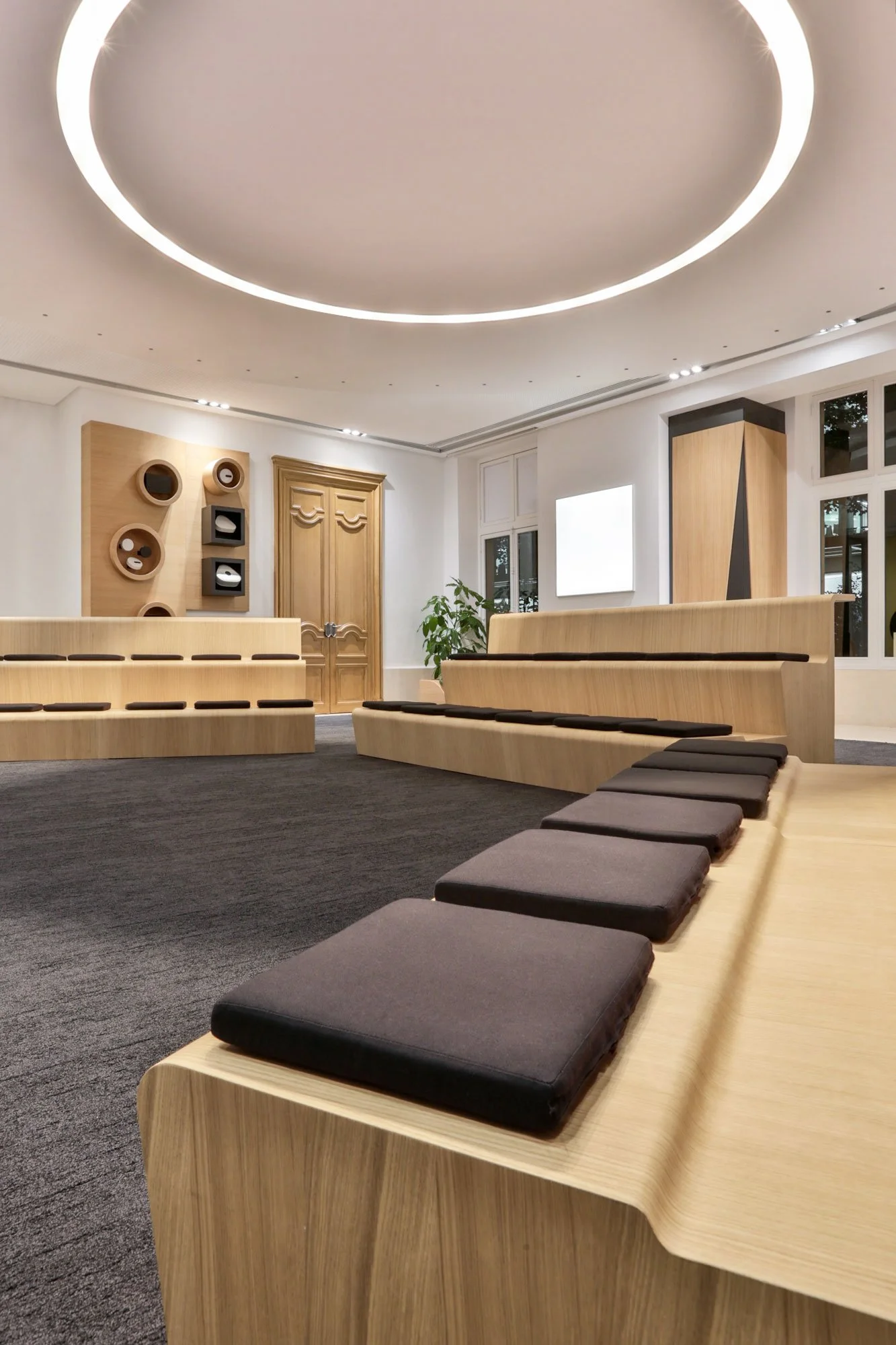 « Nous avons sculpté un espace où la forme suit la fonction, créant un forum où l’élégance et l’ergonomie s’entremêlent pour accueillir l’échange et l’innovation. »